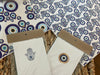 With patterns inspired by Middle-Eastern civilizations, this wrapping paper has a print of Turkish eyes, in navy and gold. Designed help thematize any wrapped object beautifully and seamlessly. This pattern comes in enlarged and contracted variations. As most bigger sized objects need a wider design.