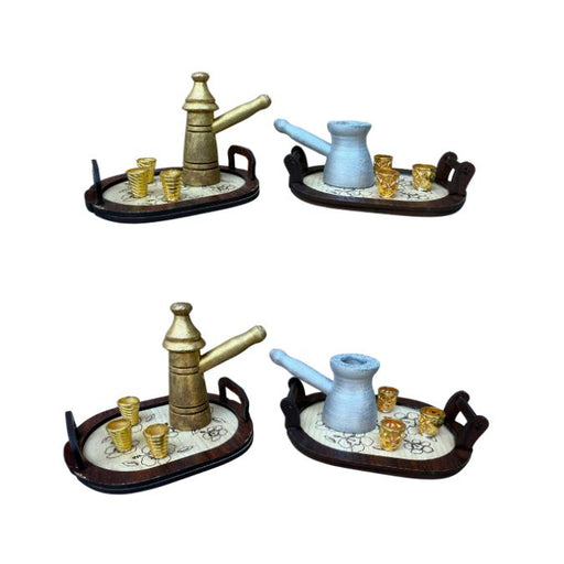 View full detailsMiniature tea or coffee pot and cups on a wooden tray. (Miscellaneous Color) Each set is available in a variety of vibrant colors that are chosen a...