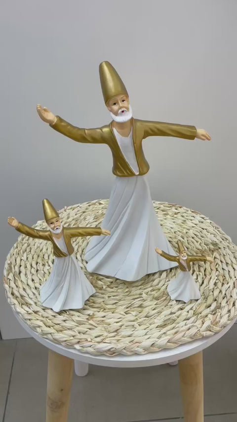 Whirling Dervish Figurine wearing gold and white attire.