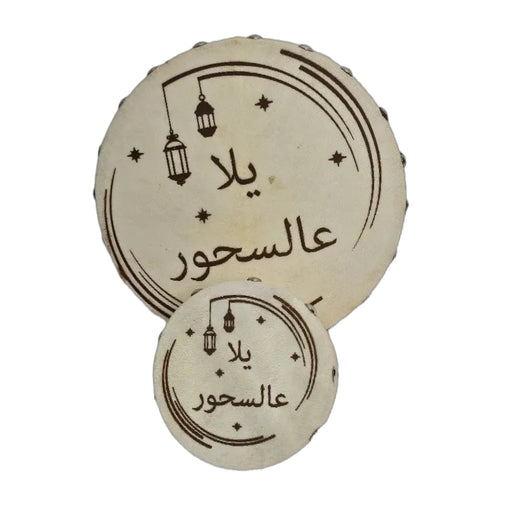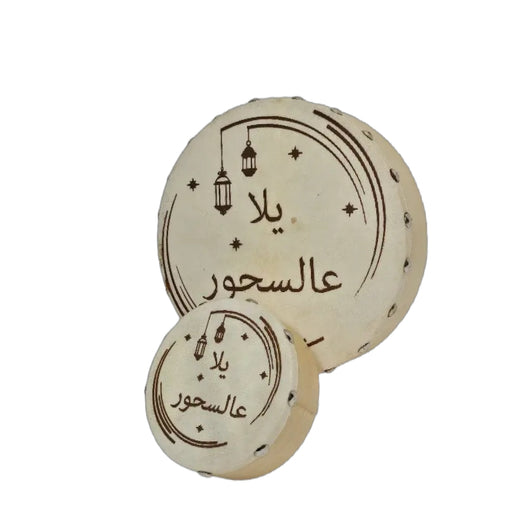 Printed tambourine with the words "يلا علالسحور" which means "Come on Lets have Suhoor" which is the meal before fasting starts. This unique acce...