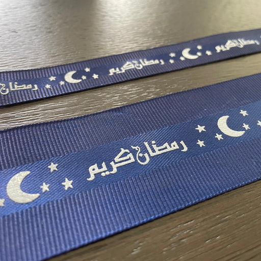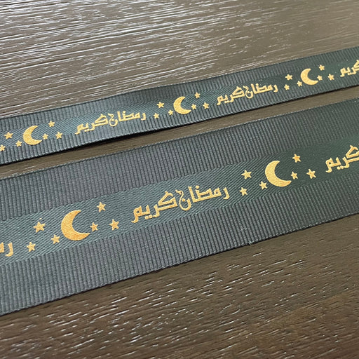 Taffeta like ribbon with a gross grain frame. "Ramadan Kareem" ribbon in Arabic is printed with stars and moon. Dimensions: Large: 1 1/2" (3.8 CM) ...